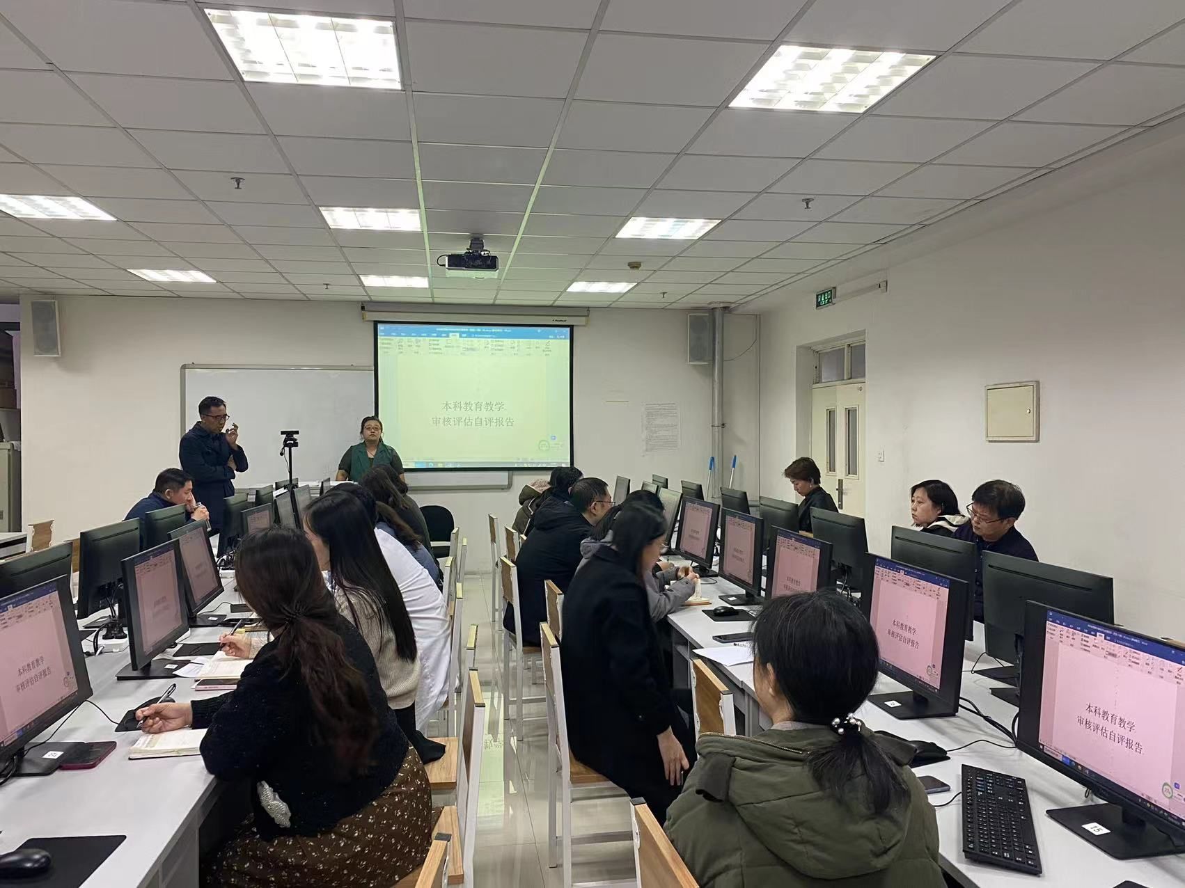 会议伊始,任玥副院长作为主持人,带领全体教职工认真研读了本学院的自评报告。她详细阐述了报告中的各项内容,并逐条与相关老师进行确认,确保每一项数据、每一个结论都准确无误。任副院长的细致讲解和严谨态度,为全体教职工树立了良好的榜样,也为接下来的工作奠定了坚实的基础。