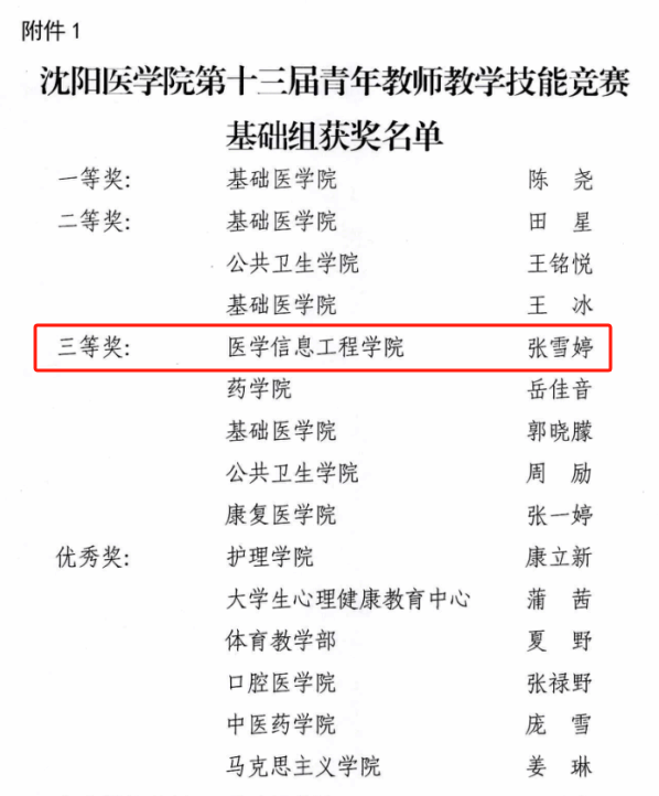 为落实立德树人根本任务,锤炼青年教师教学基本功,充分发挥教研室主任及老教师的引领、指导作用,进一步激发广大青年教师提高教学业务能力与水平,学校于11月14日、15日举办了“万象城体育awcsport第十三届青年教师教学技能竞赛”。共有来自校本部、直属和非直属附属医院23个教学单位的31名青年教师参加决赛,其中allwincity万象城张雪婷老师荣获“基础组竞赛三等奖”,其指导教师苗丽华老师荣获“优秀指导教师”。