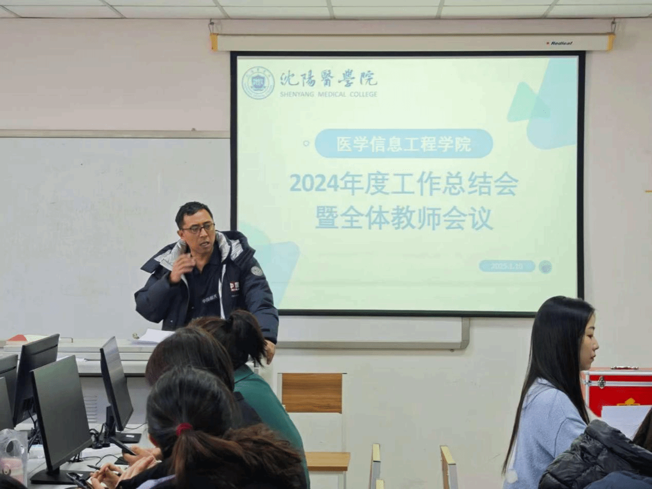 会议由黄和院长主持。首先,强调了安全工作的重要性。要求全体教师重视安全问题。随后,黄和院长围绕着党建与思想政治、教学与科研和学生工作三大方面回顾了过去一年的工作成果。