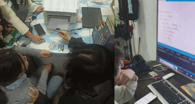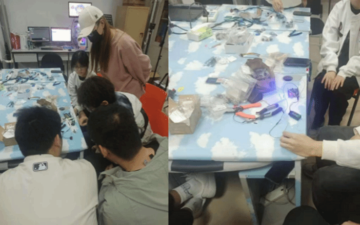 实验过程中,同学们积极交流互动,分享各自独特的创意与技巧,不断优化接线方式和代码参数,充分激发了创新创业思维和动手实践能力。